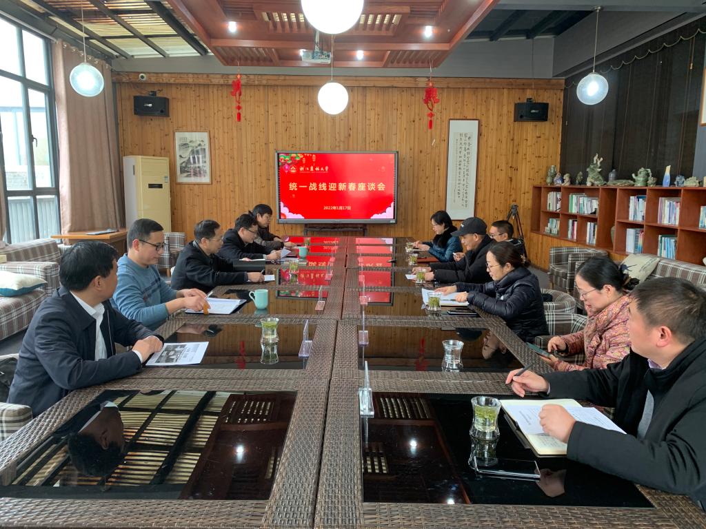 冯尚申代表学校党委向与会人员及广大统一战线全体成员致以新春的祝福。在听取各民主党派、知联会的年度工作交流和下一步思路后,冯尚申对学校各民主党派、统战团体一年来取得的丰硕成果表示肯定,并提出新年期望。他指出,要深化“四史”学习教育,提高政治站位,同心、同向、同行,合心、合力、合拍,把握好正确政治方向,打造好命运共同体,围绕学校战略目标,服务重点工作,汇聚党外人士的智慧和力量;要强化自身组织建设,激发内在活力,加强规范化标准化建设,建强班子、优化队伍结构,实现有序健康发展;要提升参政议政能力,彰显履职作为,要发挥自身优势,按照学校党委和地方政府“出题目”、统一战线“做文章”的要求,深入调研,深度了解民之所想、所盼、所需,为地方政府和学校发展建言献策、架起桥梁;要注重特色品牌建设,贡献统战力量,深化与临安等地的统一战线合作交流,进一步厚植各自党派团体的特色优势,找准切入点、着力点、闪光点,做好谋划、建强基地、抓实项目、注重宣传,为服务共同富裕示范区建设贡献更多农林统一战线智慧。