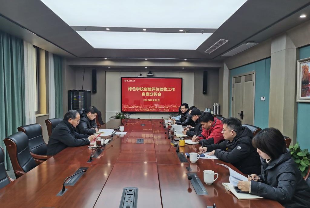 2月22日下午,学校召开绿色学校创建评价验收工作自查分析会。 会议由副校长胡祖吉主持,宣传部、教务处、设备处、基建处、公管处、信息中心、后勤中心等相关负责人参会。