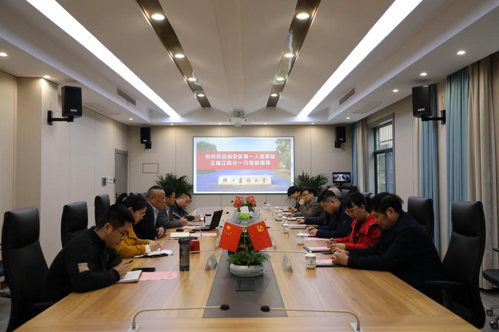 3月1日,杭州市临安区第一人民医院院长王建江一行来我校考察交流。副校长胡祖吉接待了考察组一行。校公管、后勤服务中心相关人员陪同交流。