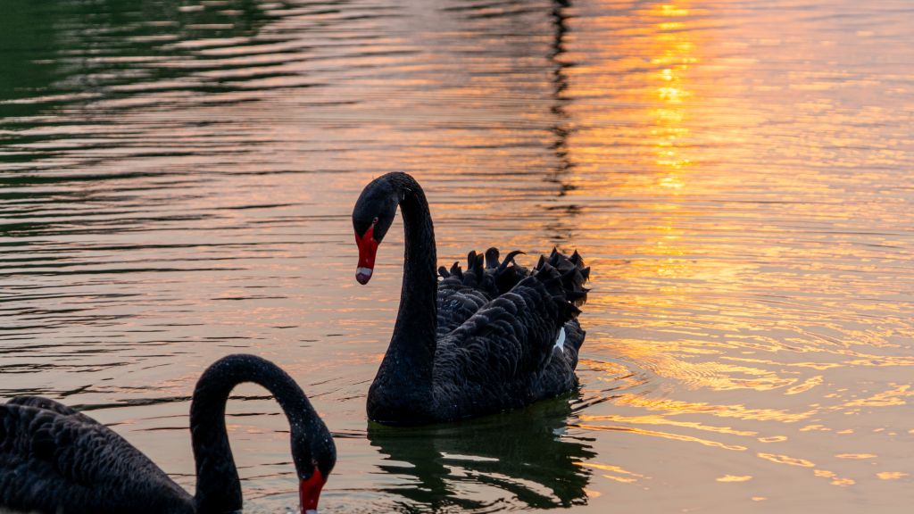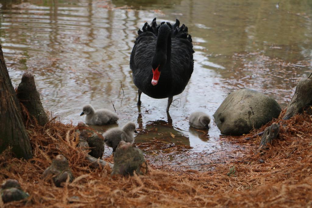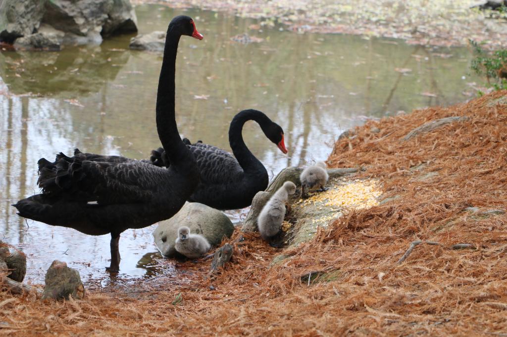而黑衣红喙、优雅悠闲的黑天鹅家族