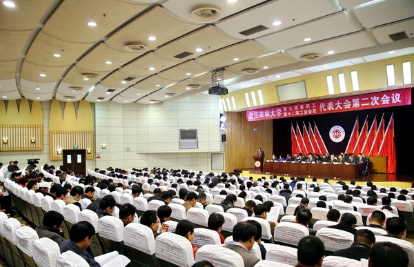 大会听取并审议了学校工作报告,审议通过《浙江农林大学“十三五”规划纲要》,审议了学校财务工作报告,工会工作报告,工会财务工作报告、工会经费审查报告,听取并审议了九届一次“双代会”提案处理情况报告,通过调整后的主席团成员及秘书长建议名单,审议了《关于东湖校区部分楼宇等命名的建议方案(审议稿)》、《浙江农林大学师生生态文明行为规范(审议稿)》,通过了大会决议。