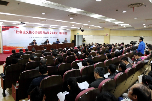 11月12日,由教育部高等学校社会科学发展研究中心、浙江省教育厅主办,我校承办的“社会主义核心价值观与大学文化建设”理论研讨会在东湖校区举行。本次会议的主题为“发挥大学文化育人功能,推动社会主义核心价值观落细落小落实”。来自全国各地高校从事社会主义核心价值观与大学文化建设宣传、教育、研究的专家学者共计一百余人参加会议。