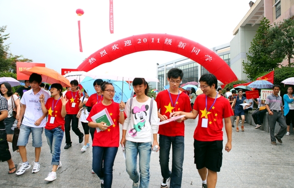 浙农林大新闻网讯 金秋九月,美丽的东湖校园再次张开怀抱,迎来祖国各地的莘莘学子。9月10日,是我校2011级新生来校报到的第一天,数千名新生背负行囊,怀揣梦想走进大学殿堂,青春的憧憬、幸福的喜悦、浓浓的爱心、欢乐的歌声,以及一幅幅迎新的场景,构成了东湖校园一道亮丽的风景线。