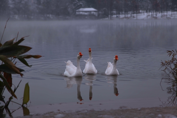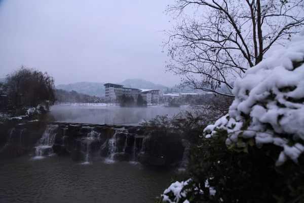 丝丝寒意从窗缝渗入,即使在屋内,亦是颇冷,阳台远眺,雪下着下着,竟越发大而密了。墨绿的远山衬着白雪,静谧悠然,仿佛从天地之初就这样契合。这美景动人,总想与友共享,若晚来天欲雪,能饮一杯无?