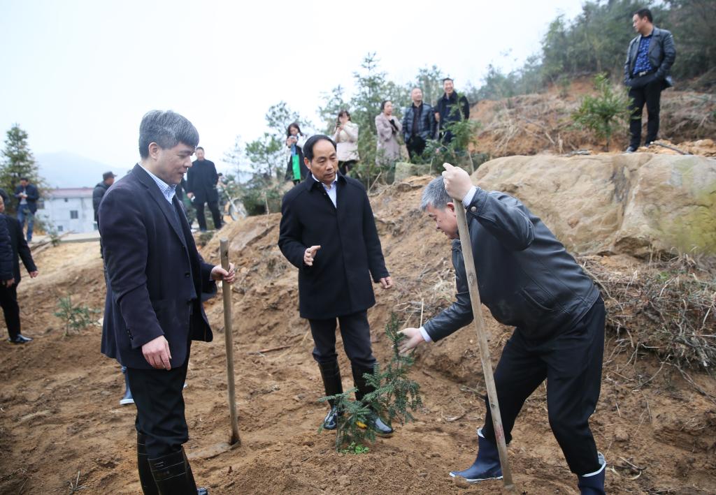 3月18日,校长周国模一行前往天台县石梁镇开展“赠送香榧苗,共建富民林”活动,以实际行动贯彻实施省教育厅、浙江农林大学合作帮扶石梁镇“三年行动计划”,持续推进石梁镇的特色农业强镇创建工作。省教育厅高科处处长吕华,副校长金佩华,省农业厅原副厅长、我校中国农民发展中心常务副主任赵兴泉,校办,研究生院,社会合作处负责人,台州市林业局,天台县林业局等相关领导出席了赠苗仪式,并参与种植香榧树,共建科技富民示范林活动。