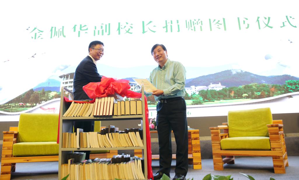 活动现场,校领导为喻树迅、王旭烽、俞德超颁发“阅读推广大使”聘书,副校长金佩华向图书馆捐赠个人藏书500册。