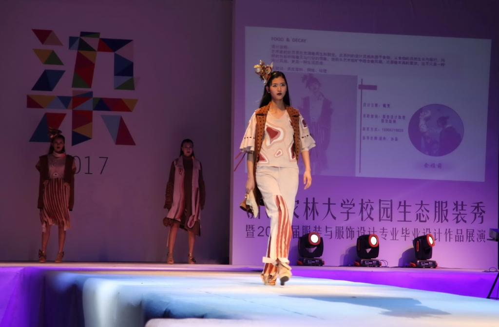 4月24日晚,校园生态服装秀暨服装与服饰设计专业毕业设计展演在东湖校区B区操场举行。