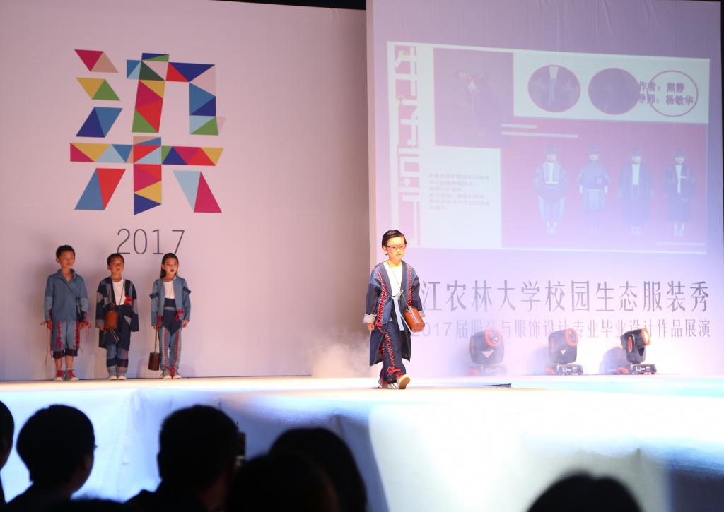 2017届服装与服饰设计专业42名毕业生,在历经六个多月的设计制作后,为大家带来都市成衣时尚系列、环保创意系列、民族文化传承系列、童真趣味系列4个系列的130余套作品。灯光下,模特们身着的各式服装闪耀着每个服装设计师的五彩世界,惊艳在场的每一位观众。