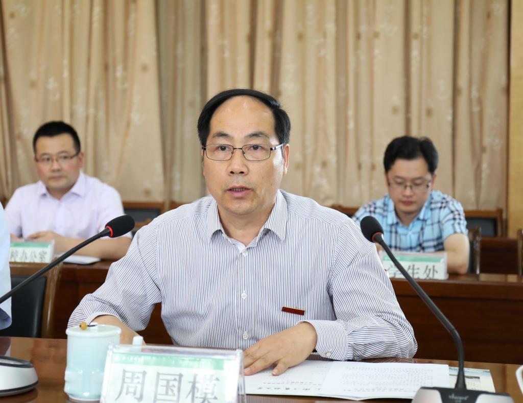 周国模向原浙江省省委常委、常务副省长许行贯同志长期以来对浙江农林大学的关心与支持,表示崇高的敬意和真挚的感谢。他指出,许老早年参加革命,为中国革命、建设、改革事业辛劳半个多世纪,把毕生的心血都献给了浙江乃至全国的三农事业。许老始终关注浙江省农业高等教育事业的建设和发展,曾多次来我校调研、视察并指导工作,对我校的改革、发展提出了许多宝贵的建议,同时为我校更名大学给予了极大的关心、支持和帮助。
