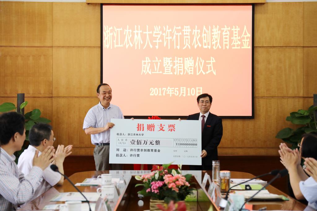 许行贯同志一生廉洁自律,艰苦朴素,此次捐赠出自己的积蓄100万元,在我校设立浙江农林大学“许行贯农创教育基金”。该基金为非动本基金,首期资金全部为许行贯同志个人捐赠,为开放式基金,也接受其他单位和社会各界爱心人士的捐赠。基金主要用于资助品学兼优、学农爱农、立志奉献农业,大学毕业前明确从事现代农业的创新、创业、创意等相关工作的应届本科毕业生。