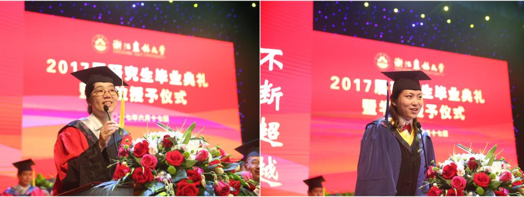 6月17日,学校隆重举行2017届研究生毕业典礼暨学位授予仪式。校党委书记周国模,校长应义斌,校学术委员会副主任、中国工程院院士喻树迅,副校长王自勇、金佩华、沈希、沈月琴,校党委委员、宣传部部长胡祖吉,校党委委员、组织部部长童晓晖等出席典礼,典礼由校党委副书记史永安主持。