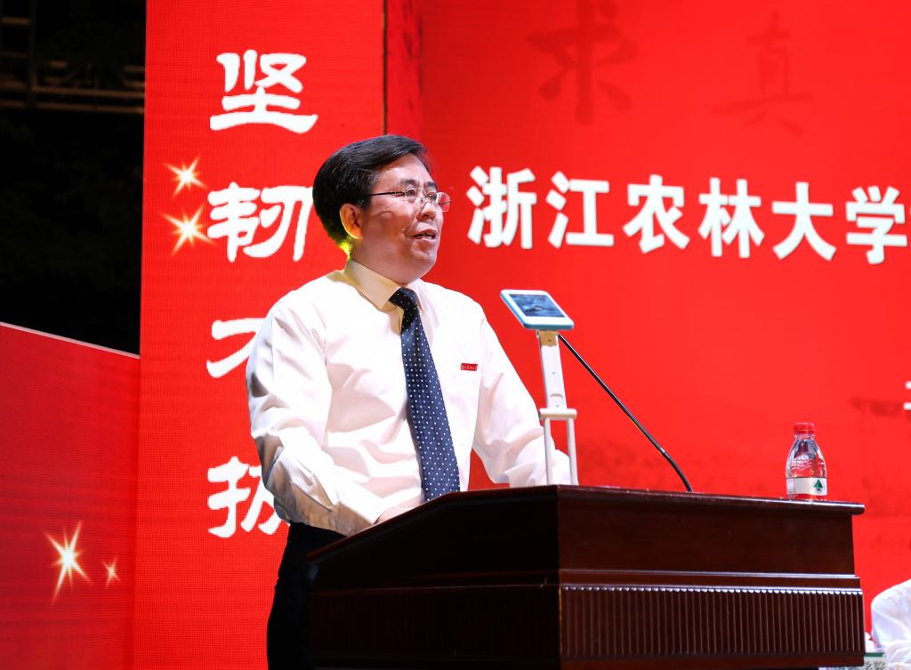 校长应义斌代表全校师生员工对正式加盟的新“浙农林人”表示欢迎,并作了题为“逐梦青春正少年”的讲话,与大家分享了对实现梦想必需具备的三种特质——自信、行动、坚韧的认识。