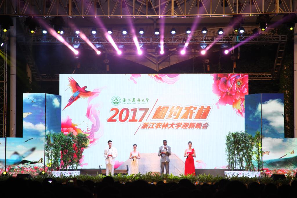 典礼结束后,举行了迎新晚会,展现了我校大学生的青春风采,充满了农林大学的人文气息,呈现了“求真敬业”的校训和“坚韧不拔 不断超越”的学校精神。晚会在齐唱《浙江农林大学校歌》中结束。