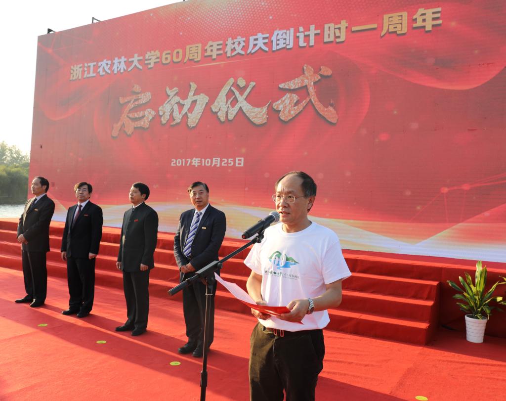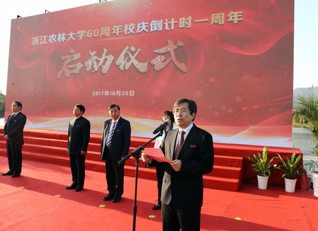 “六十年沧桑巨变,甲子年共贺辉煌。明年今日,我们全校师生员工及广大海内外校友将喜迎学校甲子华诞,这是万千浙农林人期盼的盛会,是浙江农林大学发展史上一个重要的里程碑。”校长应义斌在致辞中指出,近年来,学校各项事业持续快速健康发展,整体办学实力和社会声誉显著提升。我们要以举办60周年校庆为重要契机,全面、系统回顾办学历史、总结办学经验,增强千万农林人的凝聚力和向心力,激发全校师生与广大校友的干事创业之力和爱校荣校之情,并向社会传递浙农林人一直所坚守的育人观、治学观与价值观,进一步拓展对外交流、扩大社会影响、提升学校声誉。
