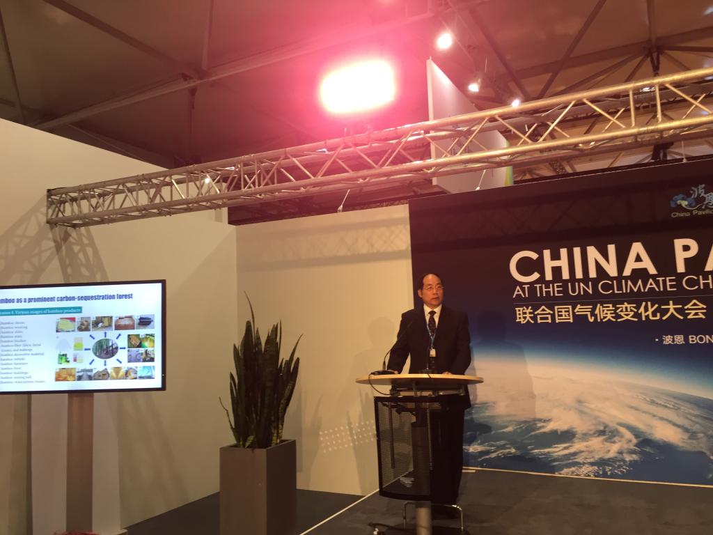 11月8日,在“中国角” 举办的“生态服务价值的多元化探索促进绿色低碳发展”的边会上,周国模教授作了题为《System Thinking Bamboo for Climate Change Mitigation, Green Development and Sustainable Communities》的学术报告,向来自世界各地的代表介绍了竹林生态系统强大的固碳能力及其在推进绿色经济、促进社区发展方面的作用。