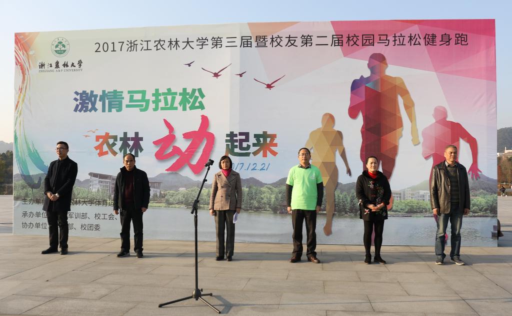 为积极倡导健康生活方式,鼓励全校广大师生积极参与长跑运动,诚邀广大校友“回家”看看,让健康和运动的思想深入人心,12月21日,浙江农林大学第三届暨校友第二届届迷你马拉松健身跑活动开幕。副校长、校体育运动委员会主任沈月琴,校党委委员、宣传部部长、校健步走协会会长胡祖吉,校工会、校友办、团委、体军部负责人出席开幕式。