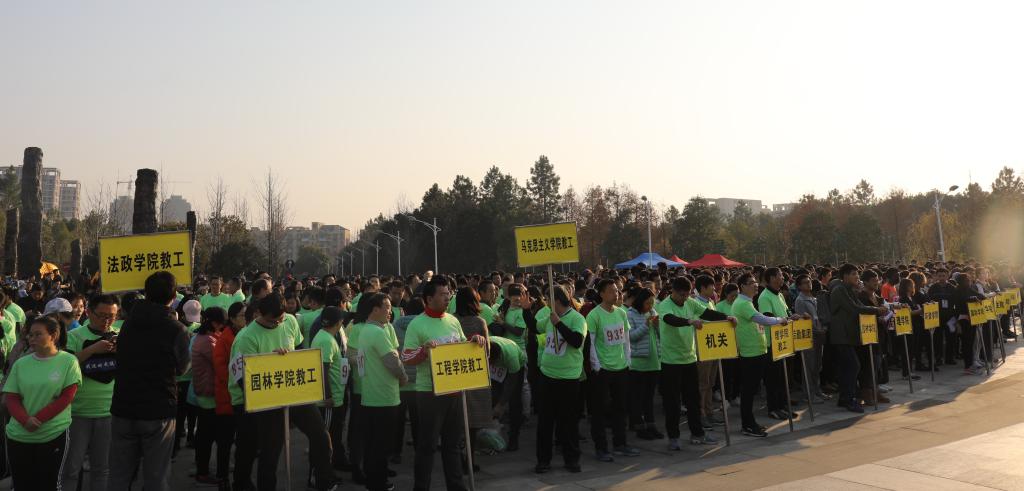 本次活动是由校体育运动委员会主办,体育军训部、工会、校友办承办,学工部、团委共同协办。教工代表队、学生代表队,以及来自省内外各地的校友代表队等1200余人参加比赛。