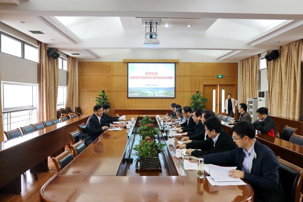 3月15日,省委组织部副部长胡旭阳在省委组织部干部三处副处长邓富国陪同下来校调研。校党政班子成员参加调研座谈。