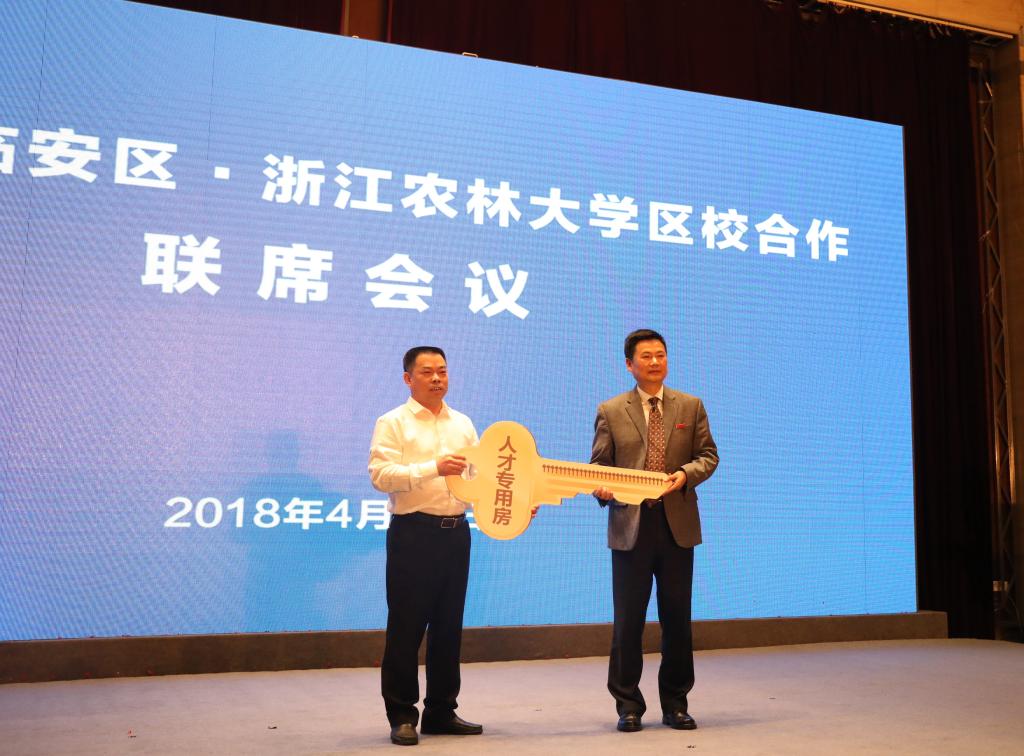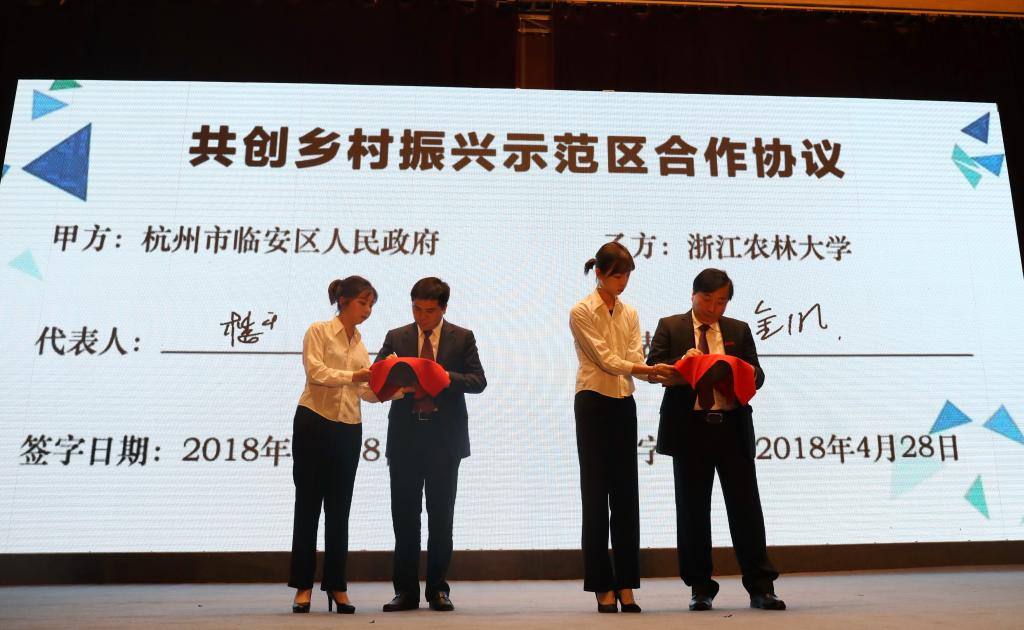 双方还签订了人才合作协议、浙江农林大学科技园入驻青山湖科技城协议、共创乡村振兴示范区协议,进行了合作课题交接、专家互聘、人才专用房移交、置换土地证交付,并为乡村振兴示范区揭牌。