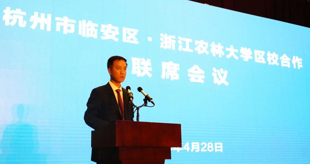 临安区委书记卢春强指出,城市因大学而生,大学因城市而兴。浙江农林大学与临安携手走过60年发展历程。今天的全面战略合作拉开区校合作新序幕,必将对双方进一步深化合作、实现共赢注入强大动力。他指出,深化区校合作,意义重大,需要我们厚植优势,乘势而上。农林大学对临安的产业发展、科技创新、人才培养贡献突出,已成为临安不可或缺的智力库、人才库和创新源。当前区校合作迎来众多历史性机遇,必将开启新的征程。深化区校合作,前景广阔,需要我们聚焦重点,精准发力。区校发展战略目标一致,双方可以在城市建设、产业发展、乡村振兴、人才引进等方面深化合作,取得更多成果。深化区校合作,使命光荣,需要我们强化保障,携手共进。双方要延续合作的好基础、好经验、好做法,建立稳定高效的合作机制,定期互通工作情况、交流工作成果,亲密合作,和谐共建。