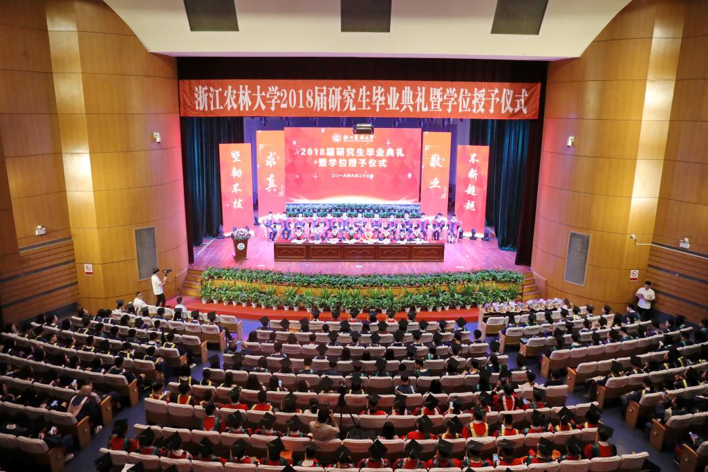 6月23日,学校隆重举行2018届研究生毕业典礼暨学位授予仪式。校党委书记周国模,校长应义斌,副校长王自勇、金佩华、沈月琴,校党委委员、宣传部部长胡祖吉,校党委委员、组织部部长童晓晖等出席典礼,典礼由校党委副书记史永安主持。