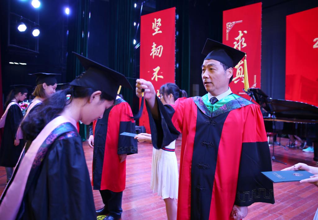 应义斌满怀深情地说,“纵有千般不舍,而今终须一别。无论今后你们身处中国的哪一寸土地,从事哪一类工作,身居哪一种职位,请你们一定记得,你们所站立的地方,就是我们的国家;我们每个人怎样,我们的国家就会怎样;我们共同守望正义的星火,我们的国家就会充满正义的光芒!我衷心希望同学们能够始终秉持‘求真 敬业’之校训,传承‘坚韧不拔、不断超越’之精神,在逆境中坚持真我、在顺境中兼善天下,守望正义,无问西东。我相信,数十年后,当你们回归母校、探访师友时,依然会是那个胸有家国情怀、不忘来时初心、满满浩然正气的青春少年!”