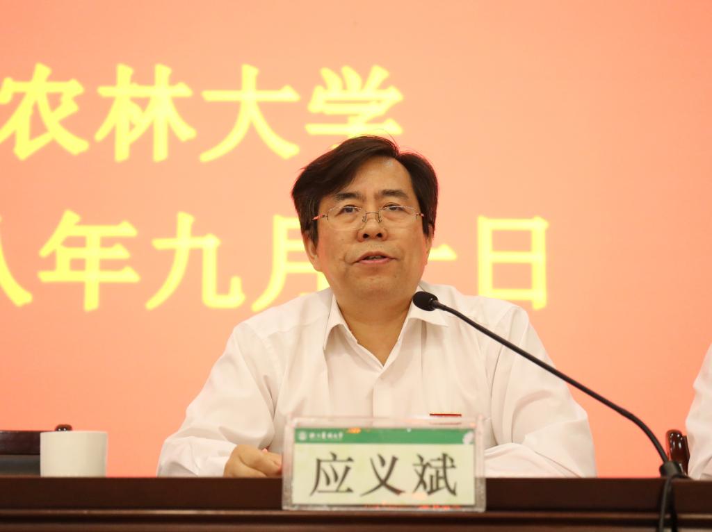 应义斌要求广大教职工,要学为人师,行为世范,要以自己的一言一行影响学生,担当起学生健康成长指导者和引路人;要以本为本、精进不休,本科不牢,地动山摇,广大教师要站稳三尺讲台,更新教育教学理念,努力提升教育教学质量,为学校培养更多的优秀校友;要勇攀高峰、敏思笃行,以功成不必在我的精神境界和功成必当有我的责任担当,主动对接国际学术前沿,面向国家和区域经济社会重大需求,提升高水平科研创新能力,争做国际学术前沿并行者乃至领跑者;要放大格局、谋划未来,不断提升新的“农林高度”,蕴育新的“农林气度”,拓展新的“农林广度”,挖掘新的“农林深度”,提升站位、放大格局,为学校事业发展做出新的贡献。