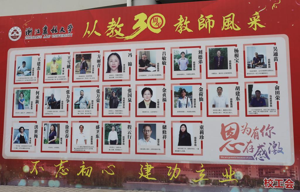 应义斌回顾了浙江农林大学六十年波澜壮阔的发展历程,总结了过去一年,在广大师生的努力拼搏下取得的一系列重大突破性成就,充分肯定了广大教职工在学校发展中的贡献。他指出,教师是立教之本、兴教之源。学校之所以能够在坚守中奋发,在奋发中超越,正是因为我们拥有一支爱校如家、爱生如子,师德高尚、业务精湛的教师队伍。浙农林师生用实际行动诠释着“坚韧不拔、不断超越”的学校精神,不断创造着一个又一个的“农林奇迹”,综合办学实力和社会声誉显著提升。