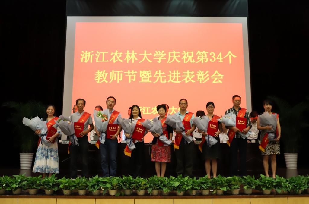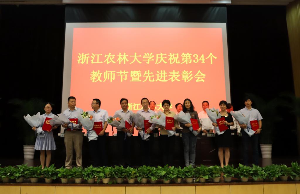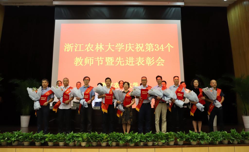 9月10日下午,学校庆祝第34个教师节暨先进表彰会在东湖校区举行。校党政班子成员周国模、应义斌、史永安、王自勇、金佩华、胡祖吉出席表彰大会,并为受表彰的集体和个人颁奖。会议由校党委副书记方伟主持。
