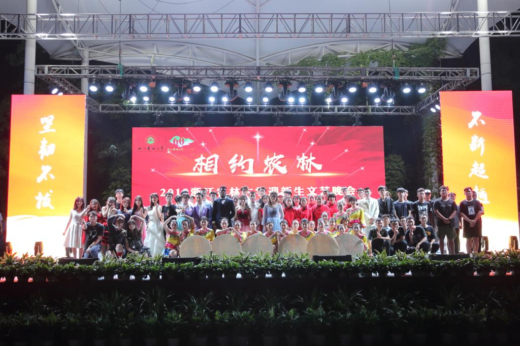 典礼结束后,全体新生观看了迎新晚会,丰富多彩的节目展现了我校大学生的青春风采,展示了“求真 敬业”的校训和“坚韧不拔 不断超越”的学校精神,演绎了“携手再超越,共筑农林梦”的校庆主题,增强新生的归属感、责任感和使命感,晚会在齐唱《浙江农林大学校歌》的歌声中完满闭幕。