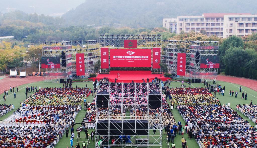 “钱塘澎湃,天目巍然……风华正茂恰少年,华夏栋梁我辈争先……奋发超越,自强不息天行健。”在雄壮豪迈的校歌声中,浙江农林大学建校60周年纪念大会圆满闭幕。