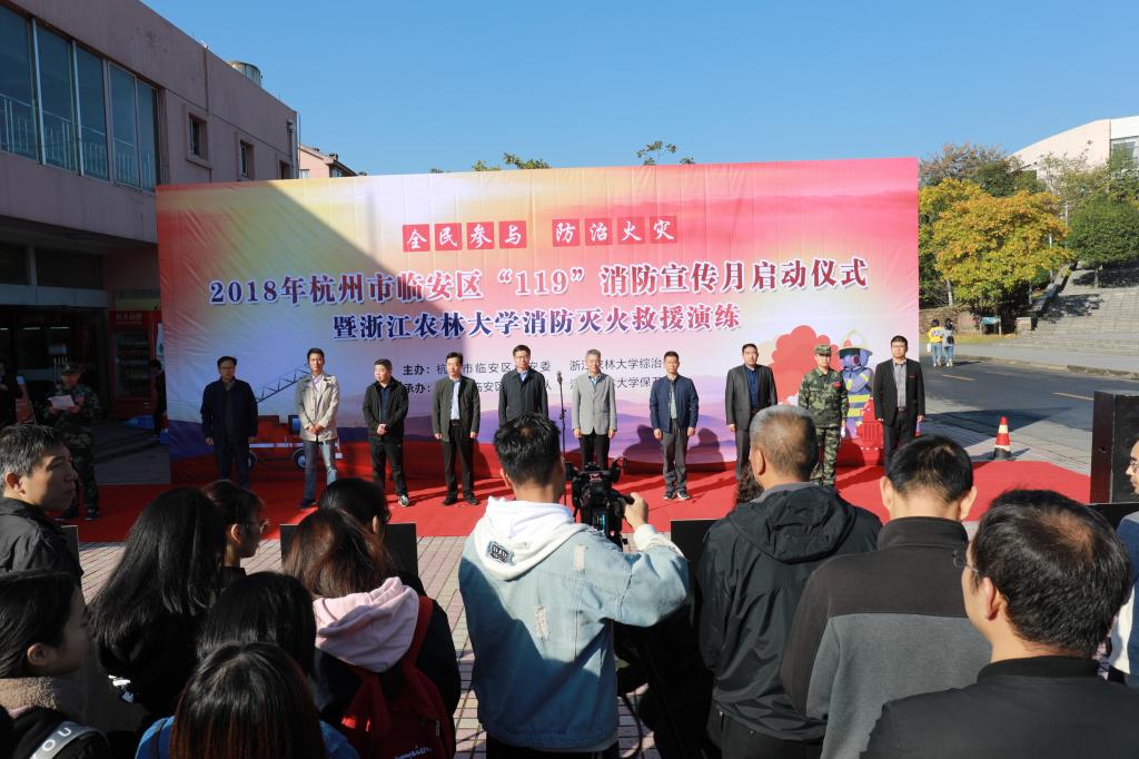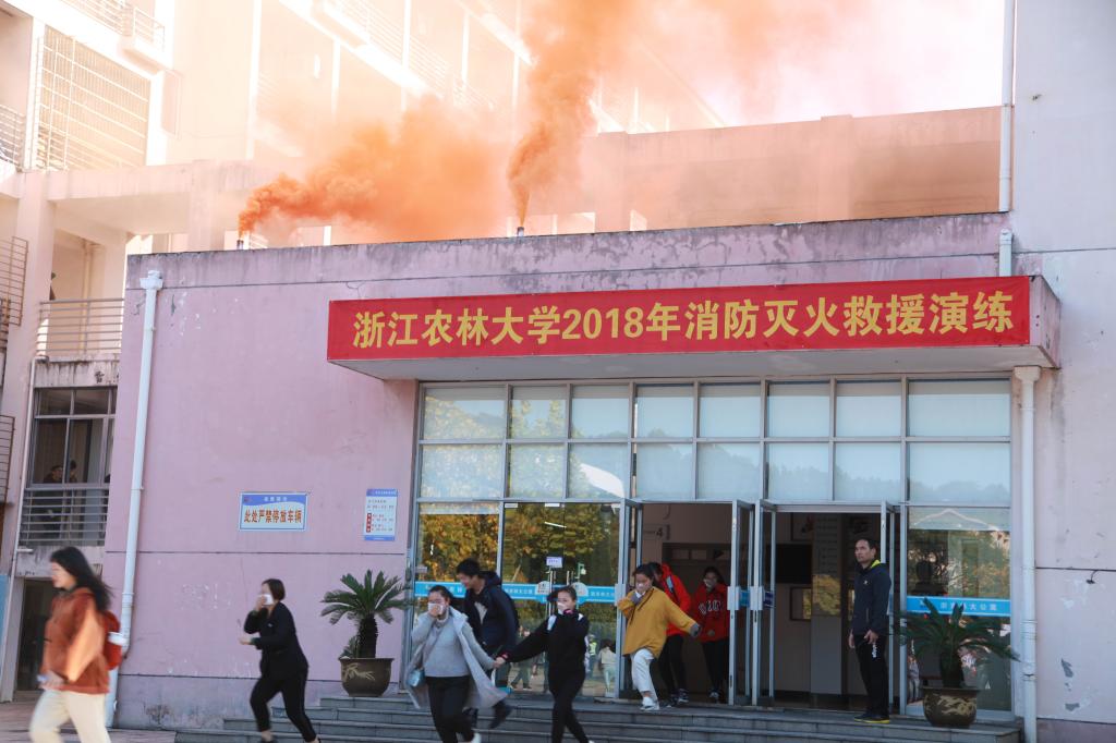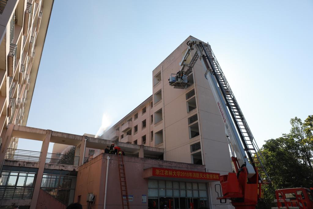 11月9日上午,浙江农林大学消防灭火救援演练在东湖校区A区学生公寓举行。副校长王自勇,临安区副区长、公安分局局长黄希和,学校相关职能部门、后勤集团负责人,临安区消防大队、应急办、综治办、安监局和消安委等部门负责人出席启动仪式,并指导观摩演练活动。