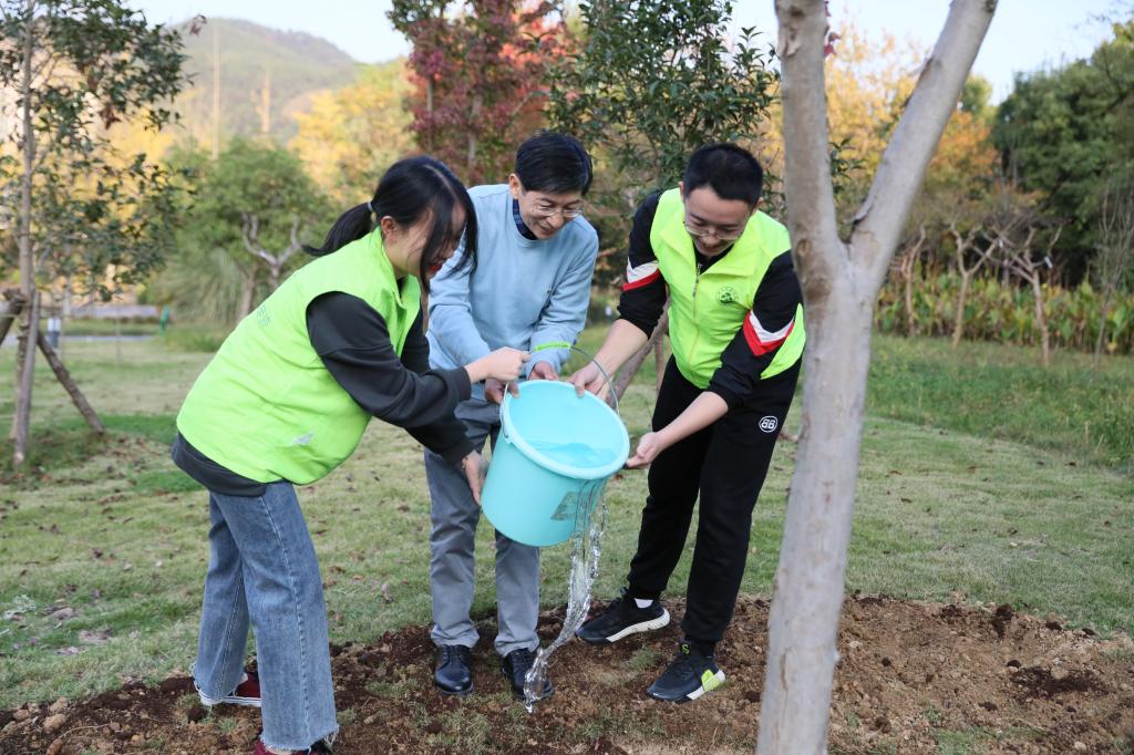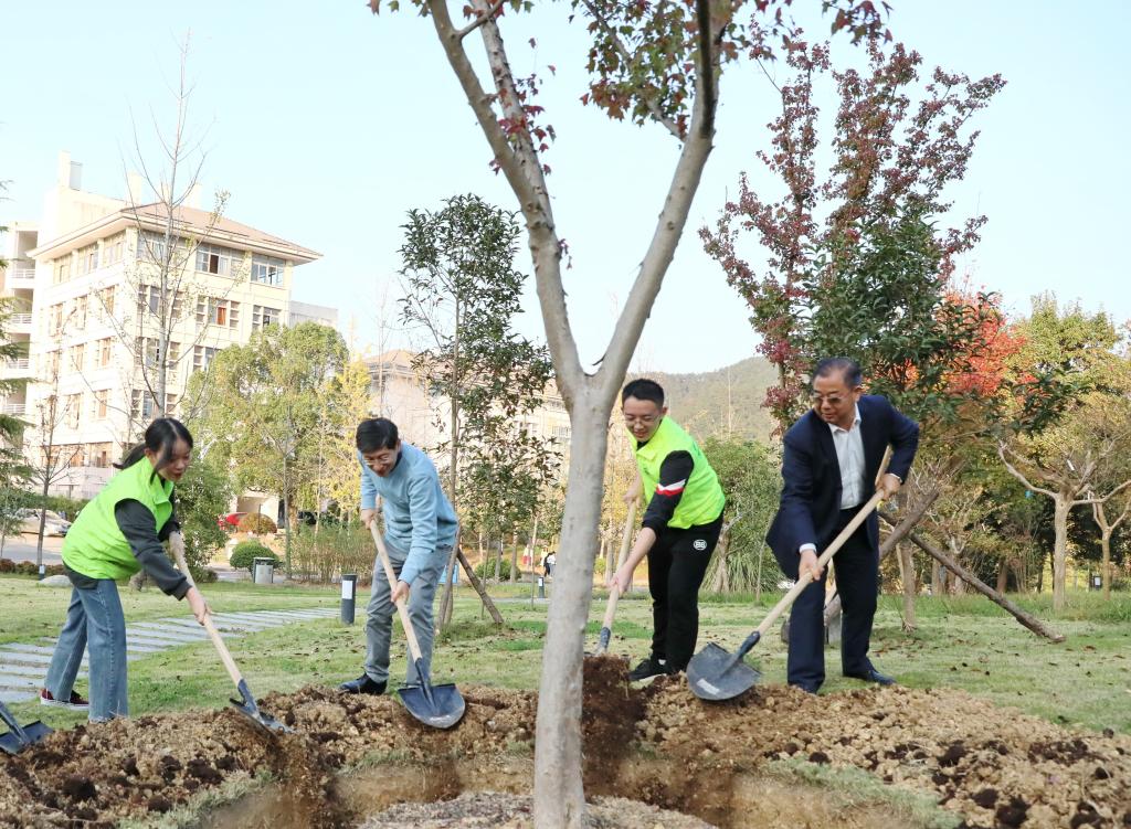11月6日,中科院院士、强电磁工程与技术专家王秋良一行来校考察,校党委书记沈满洪、党委副书记冯尚申等陪同。王秋良院士参观了东湖校区,并东湖校区院士林亲手种下一棵三角枫。院士一行还参观了校史馆和农作园。