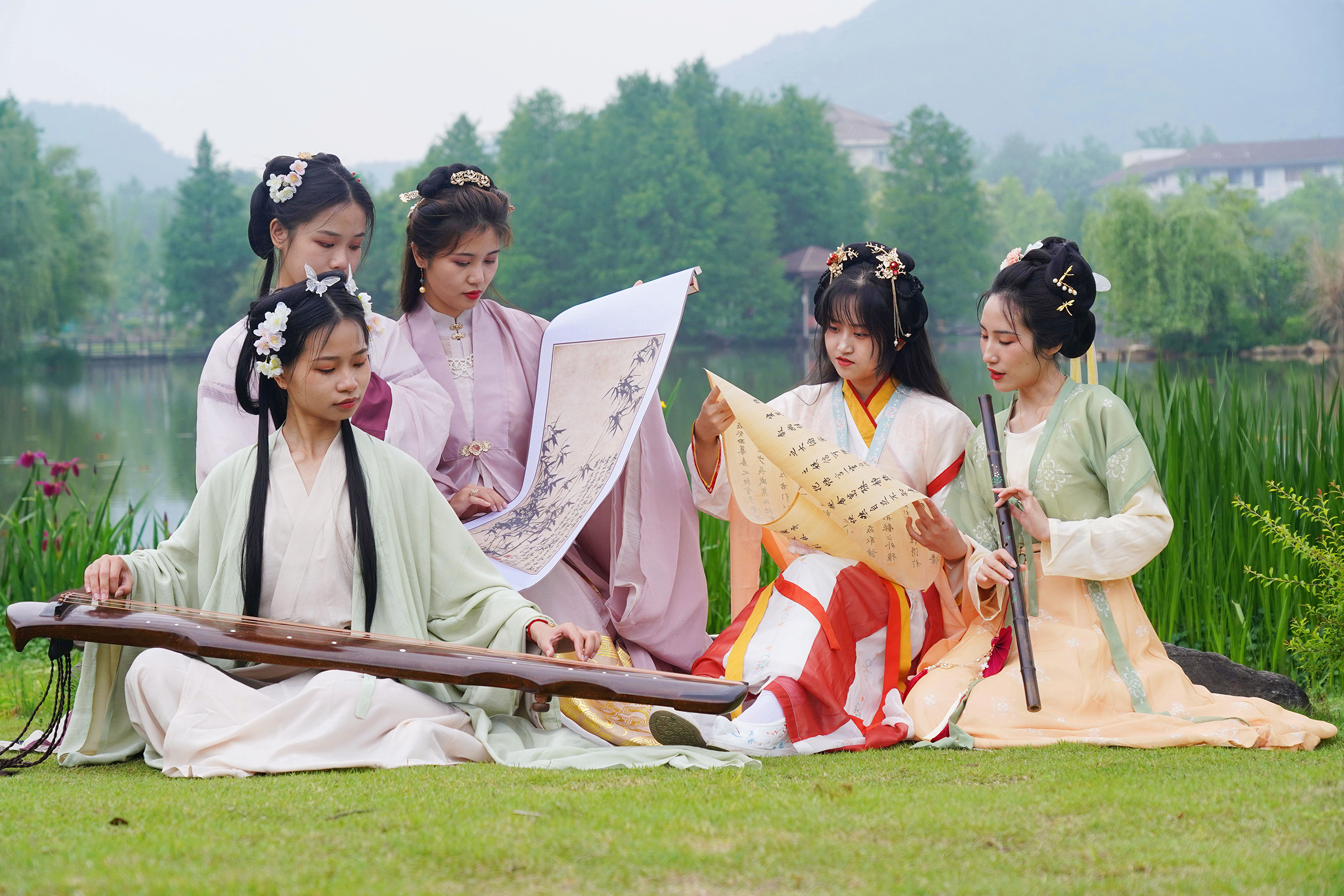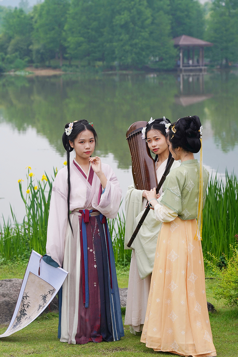 日前,浙江农林大学汉服协会的学生们,身穿汉服在校园里参加雅集活动。大家吟咏诗文、吹箫弹琴,交流弘扬民族服饰、民族乐器、诗词书画等传统文化,希望能吸引更多爱好传统文化的同学能够加入到他们的社团中去。