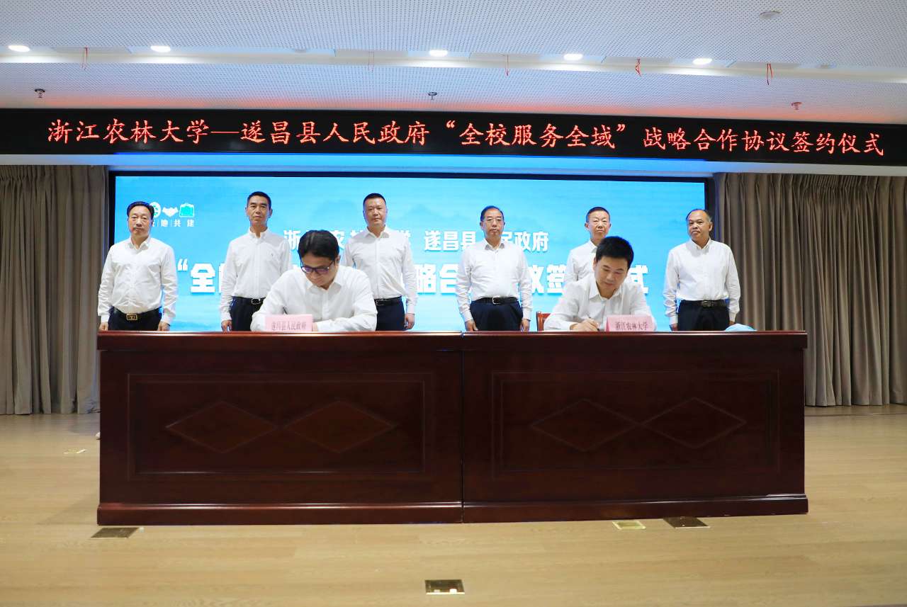 5月13日,浙江农林大学与浙江省丽水市遂昌县签署《“全校服务全域”战略合作协议》。今后,浙江农林大学将围绕7大方面、实施23项重点工作,整合全校力量服务遂昌全域,合力打造山区县共同富裕先行样板。
