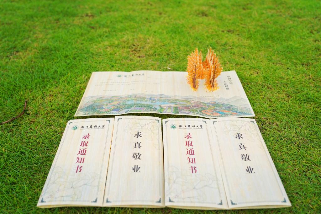 浙江农林大学以刨切微薄竹为原料制作的2022版录取通知书。