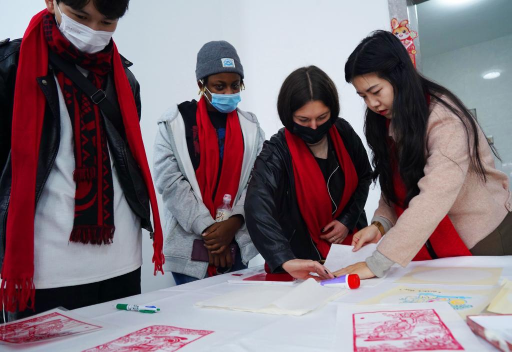 近日,在老师指导下,浙江农林大学国际学院的留学生们,聚在一起学习写福字、拓年画、挂灯笼、贴窗花,体验中国传统年俗文化。