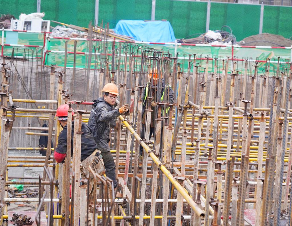 日前,浙江农林大学学生宿舍扩建工程工地上,项目施工人员和管理人员在确保质量和安全的基础上,加班加点推进项目建设。