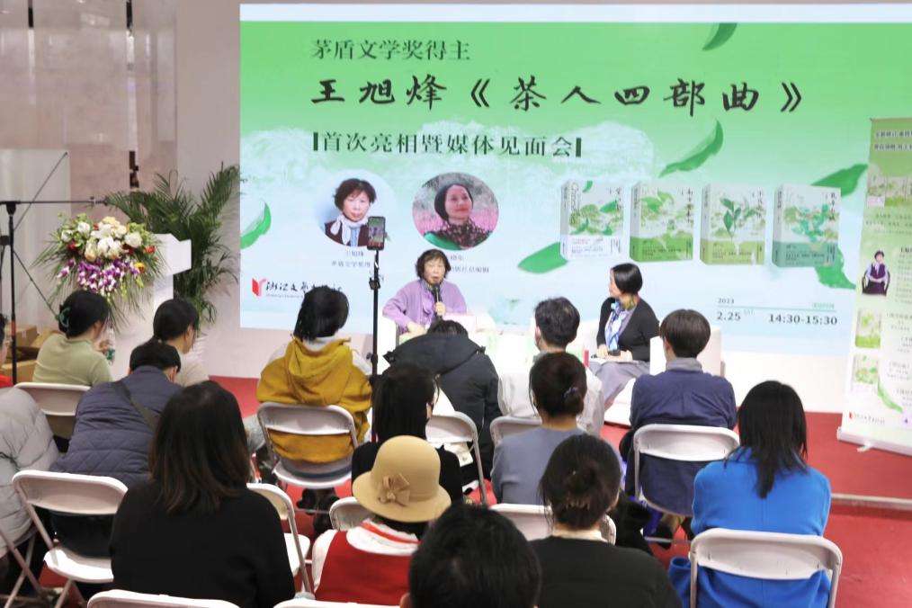 2月25日,由浙江文艺出版社主办的茅盾文学奖得主王旭烽代表作品“茶人四部曲”首次亮相暨媒体见面会,在北京图书订货会浙江展区举行。作者王旭烽、浙江文艺出版社总编辑王晓乐与线上线下的读者共同分享“茶人四部曲”的创作理念、创作历程和出版故事。