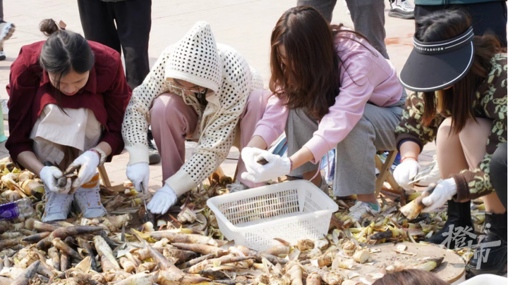 剥笋比赛的裁判说,活动特别火爆,教师职工和同学们都早早地报好了名,今天还有很多围观的同学看不过瘾,想要现场报名体验剥笋,“我们准备了1000斤笋,好像都不太够大家剥”。