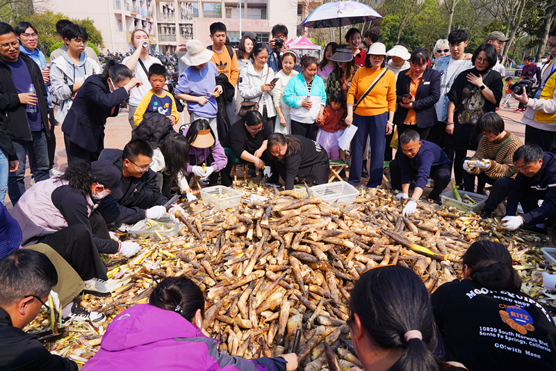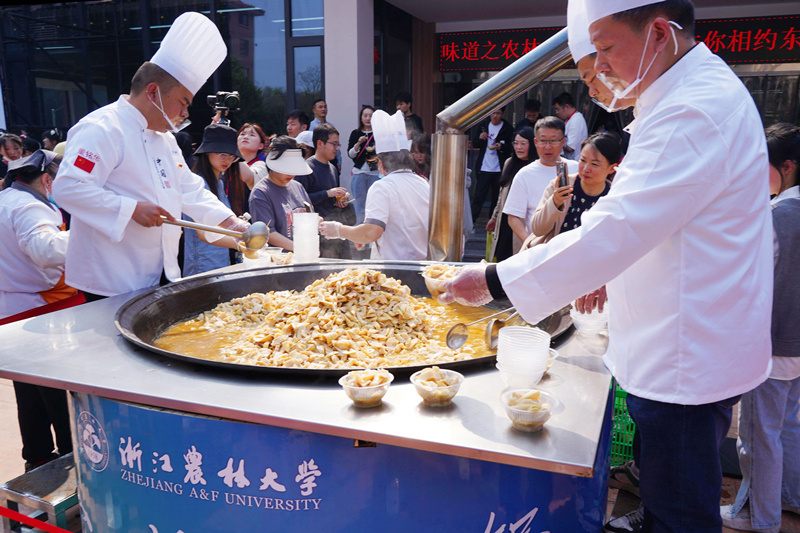 4月2日,在浙江农林大学举行的“大学味道之农林共富竹笋宴”上,该校用了一只直径1.5米的大铁锅,炖了一锅用1500斤竹笋和300斤咸肉烧制而成的咸肉春笋,吸引了2000多名师生的免费尝“鲜”。