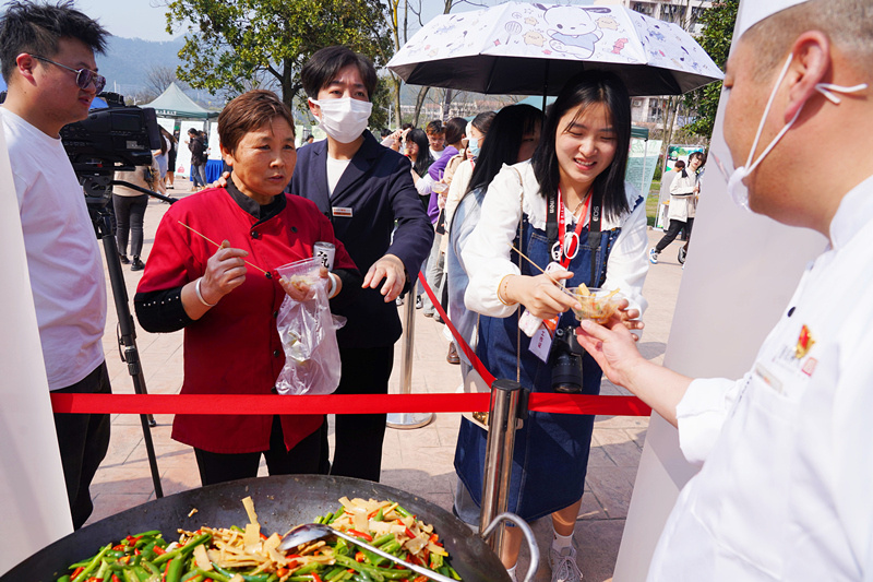 当天,浙农林大还举办了一系列和笋竹有关的活动,引导师生感受笋竹文化、体验竹科技。具体活动包括师生剥笋比赛,100多名师生限时5分钟剥好1000多斤竹笋;现场烧制13 道特色笋宴菜,这些都是五代十国时期吴越国下辖的十三州以笋为主要食材的特色菜;邀请知名餐饮企业以笋为食材,用炒、蒸、熘、煮、爆、焖、烩等多种方式制作的 6 桌全笋宴。活动现场还专门设置笋用竹品种、竹笋文化、高科技竹产品等的展示区,并举行中国竹笋文化与产业发展座谈会,校企携手助力竹产业发展。