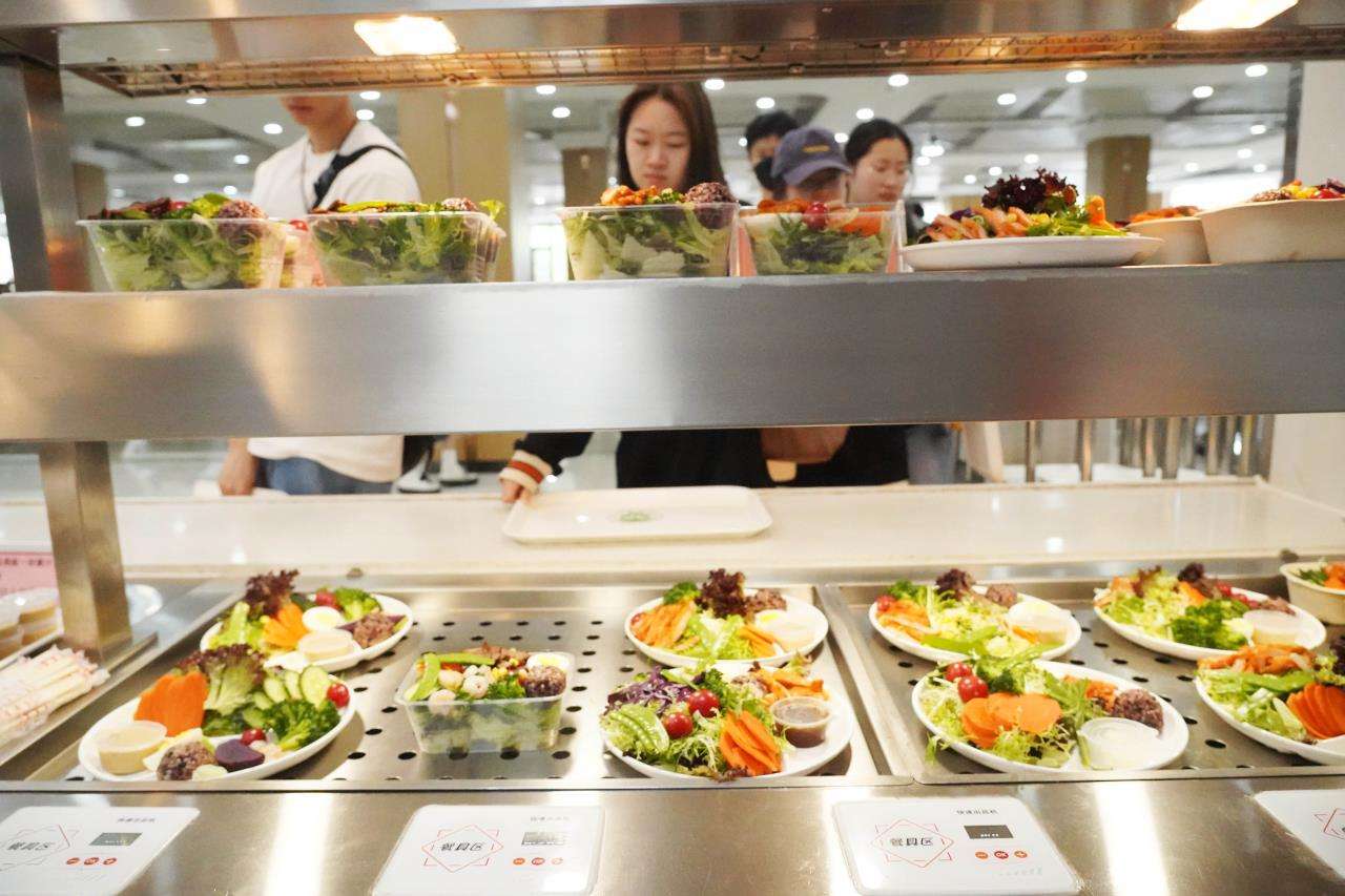 “今天天气太热,吃不下热的饭菜,我发现食堂新开的宝藏减脂餐。刚发了朋友圈,就有好多同学问我在哪个窗口买的。学校食堂能上线10多块钱减脂餐,真的很贴心。” 浙江农林大学风景园林202班的李闻吃着虾仁减脂餐说道。