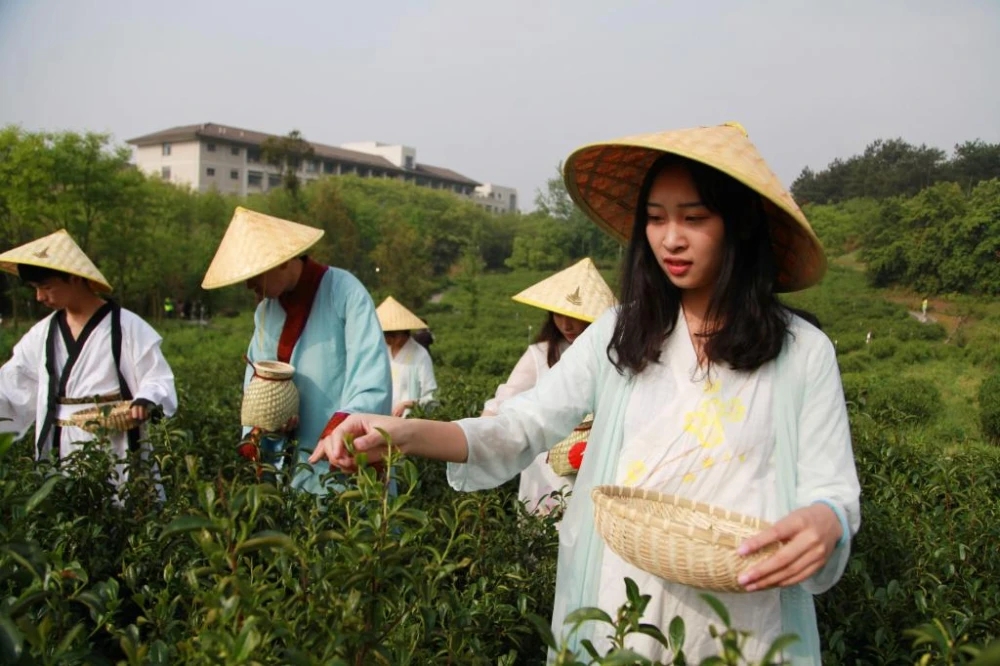 浙江农林大学学生正在参加采茶劳动。浙江农林大学 供图