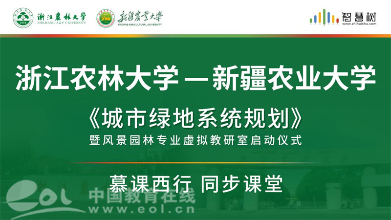 浙江农林大学和新疆农业大学目前实施的“慕课西行同步课堂2.0”,是两校风景园林、园林专业的全方位教学、科研合作,包括《城市绿地系统规划》《公园规划设计》等国家一流课程的课程共享,《南方四角攒尖亭建造虚拟仿真实验》等国家一流虚拟仿真实验项目的资源共享,两校共同组织课程设计、毕业设计,教师开展教研活动,共同编写教材,申报教改、科研课题等等一系列工作。