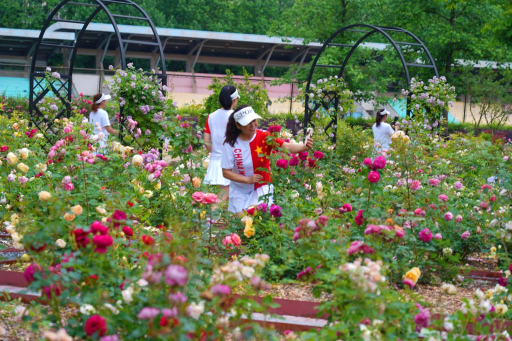 近日,在浙江农林大学“余香”园,数百种月季高低错落、争相绽放,在翠绿枝叶的衬托下更显淡雅别致、柔嫩娇艳,为校园增添了一抹亮色,吸引了不少师生来此打卡拍照。