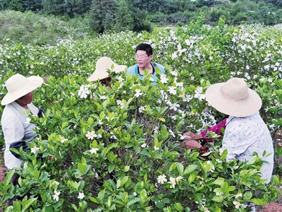 张有做说:“栀子投产3年产果,5年进入盛果期,可持续收获数十年。亩产鲜果可达800—1000公斤,按每亩30公斤栀子油计算,每亩栀子林产值4000—5000元,再加上栀子花每亩200公斤可收入1000元,对提高种植户收入作用明显。”