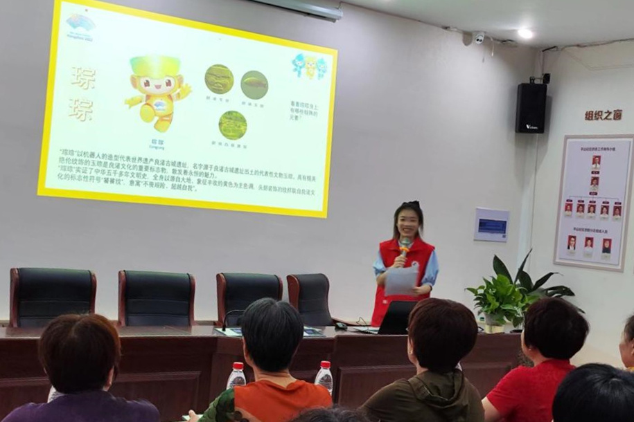 亚运会就在家门口举办,很多居民自然会根据自己的兴趣,前去观看各类比赛。那么不同的场馆都有什么不同的项目?观看亚运会和观看其他比赛有什么区别?观赛需要注意什么礼仪?观看比赛期间,如果遇到国际友人咨询交通、景区、食宿等方面的情况,普通百姓该如何向他们介绍呢?如何想和一些明星运动员合影交流,有没有机会?针对社区居民们关心的各种和亚运相关的问题,志愿者们纷纷给予了相关的回答。