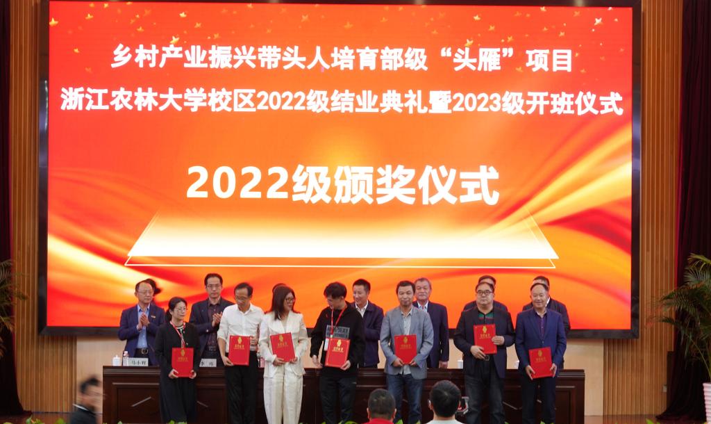 10月21日,浙江农林大学举行了乡村产业振兴带头人培育部级“头雁”项目2022级结业典礼暨2023级开班仪式。在该校经过一年的学习提升后,200名“头雁”项目学员顺利“出师”。
