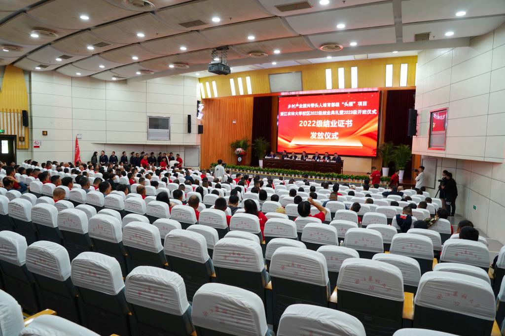 “过去一年,我们收获巨大。今天的结业,是我们创业路上提升的第一步,今后我们将联合更多‘头雁’,互相帮助、资源交流,形成‘雁阵’,助力产业提升,优化产业结构。”10月21日,在浙江农林大学举行的乡村产业振兴带头人培育部级“头雁”项目2022级结业典礼暨2023级开班仪式上,2022级“头雁”项目学员、浙江省金华市婺城区双善文化艺术策划工作室负责人鲍胜充满信心地说。